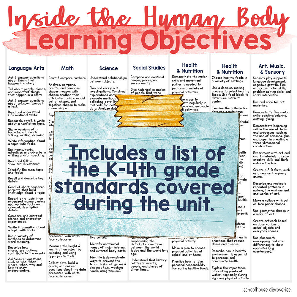 Each lesson seamlessly blends subjects—writing journal entries, graphing health data, labeling diagrams, crafting 3D models, and even imaginative dramatic play. It’s all designed to help your kids build knowledge while having fun!